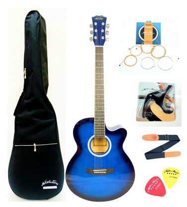 Mike Music 40Inch Acoustic Guitar With Bag And Strap And Extra Strings And Capo And Guitar Picks (40 Inch Glossy, Blue)
