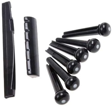 Mike Music 6 Bridge Pins With Saddle & Bridge Saddle Bone For Acoustic Guitar (Black)