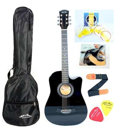 Mike Music Acoustic Guitar With Bag And Strap And Extra String And Capo Right Hand (38 Inch Glossy, Black)