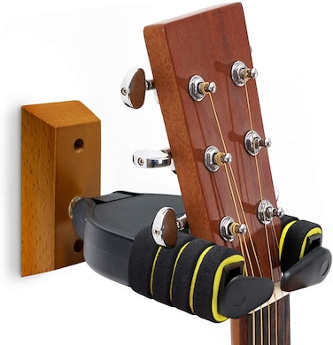 Mike Music Guitar Hanger Wall Mount Auto Lock Hard Wood Base Guitar Hook Bracket Protection Holder Stand Accessories For Acoustic, Electric, Classical, Bass Guitar (Pack, Black)