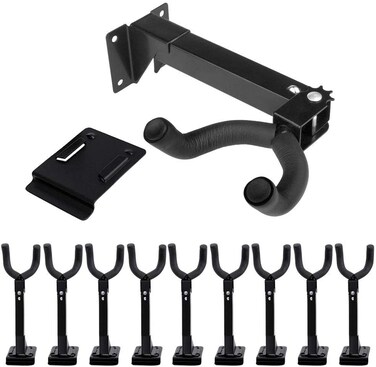 Mike Music Guitar Hanger Wall Mount Hook Stand 180° Adjustable w/Slat Wall Adapter 10pcs (Guitar Long Hanger 180° Adjustable 10pack, Black)