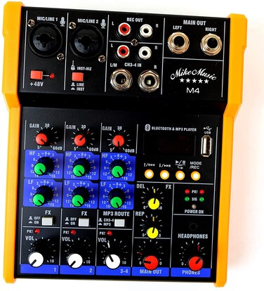 Mike Music Sound Mixing Console With Bluetooth Record 4 Channels Audio Mixer With, 3, Pin Xlr Male To 1, 4" Mono Male, 2 RCa Male To 3.5mm (1, 8") Male Stereo Jack Phono Y Splitter (Black)