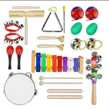 - 【Perfect Musical Instruments Set】Including 12 types 20pcs shaking, tapping, beating and blowing instruments.These kids musical instruments is very colorful, expose your mini-musician to different tones, volume, and rhythm. Xylophone, Tambourine, Triangle with Strike, Maracas, Shaker Eggs, Wrist Bells, Handle Rainbow Bell Stick, Castanets, Bird Whistle. 【Educational Musical Toys】Early childhood educational instruments help children move and feel the beat, cultivate children's sensitivity to music and sense of rhythm, perfect to improve children's hand-eye coordination, social skills, creativity, concentration, development and intelligence. 【Kids Friendly Design】The instruments are made of non-toxic quality materials and lead-free paint. All surfaces are smooth and safe, and there is no need to worry about harming children. 【Individual Package to Storage and Carry】Come with an unique special designed carrying bag for cleaning and storage. It is convenient for children to develop the habit of collecting toys, and easy to carry when going out. 【Perfect Gift for Kids】Kids musical instruments set is a great Christmas, Birthday or any occasion gift for boys and girls.