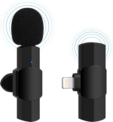 Professional Wireless Lavalier Lapel Microphone for iPhone, iPad - Cordless Omnidirectional Condenser Recording Mic for Interview Video Podcast Vlog YouTube (Lavalier Microphone for iPhone 1V1, Black)