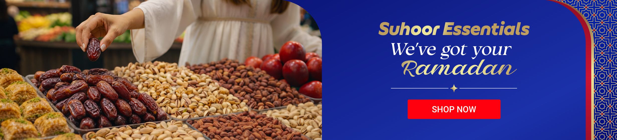 Enjoy a wide range of discounts and offers on Ramadan essentials for a blessed Iftar or Suhoor, such as dates, samosas, beverages like Vimto, Pepsi, coffee, tea, rice, meat, frozen vegetables, beauty products, electronics, ramadan box, banana and more!