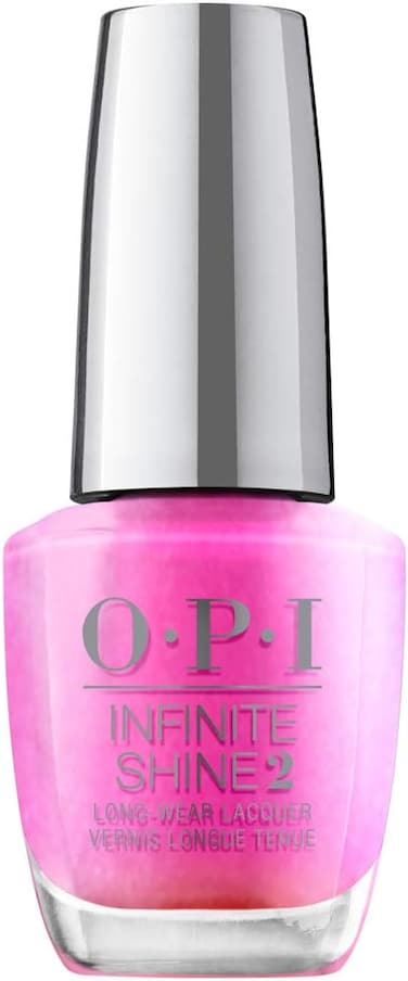 Rainbows in Your Fuchsia' is bold hot pink with a pearlescent lustre. OPI's Infinite Shine is a three-step long lasting nail polish line that provides gel-like high shine and 11 days of wear. Use with Infinite Shine Primer and Infinite Shine Gloss for extended wear Stay-true color and shine for up to 11 days of wear with ProStay Technology. High shine finish like gel color Applies and removes easily like a regular nail polish. No UV or LED light needed. How To Use Properly prepare your natural nail for long lasting nail polish to ensure lacquer adhesion. Apply one coat of Infinite Shine Primer. Shake long lasting nail polish shade of choice before application to properly mix pigment (this will help avoid streakiness!). Apply two thin coats of Infinite Shine to each nail. Brush some polish at the nail's free edge to cap the nails and help prevent chipping. Apply one coat of Infinite Shine Gloss and cap the free edge with Infinite Shine Gloss.