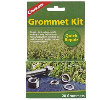 For making repairs to canvas, plastic, cotton & synthetic fabrics Also used to repair tarps, lawn furniture & more Brass plated grommets for durability Set includes grommets, cutting tool, insert punch & cutting die.