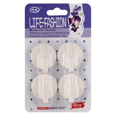 The GTT Life-Fashion Sticky Hooks 7469 White Pack of 4 is a versatile and convenient solution for organizing and hanging various items around your home.
