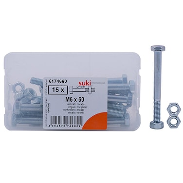 Suki Zinc-Plated Hex Screws (M6 — 60 mm, Pack of 15)