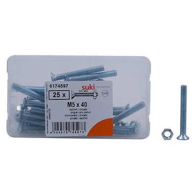 Suki Zinc-Plated Slotted Flat-Head Countersunk Machine Screws (M5 — 40 mm, Pack of 25)