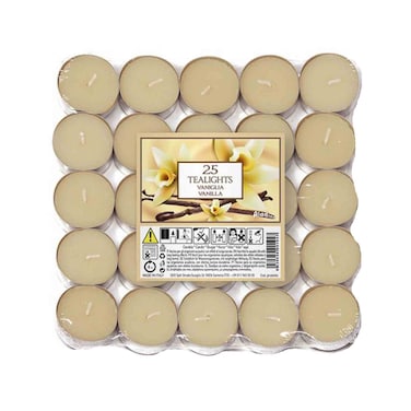 These tealights are made with vanilla-scented wax and have a beautiful beige colour that will complement any decor. Each pack contains 25 tealights, so you'll have plenty to use for special occasions or everyday use.