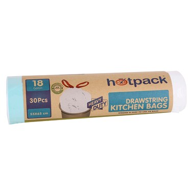 Hotpack - Drawstring Kitchen Bag White Roll 55X 65 Cm - 30 Pcs - 18Gallon