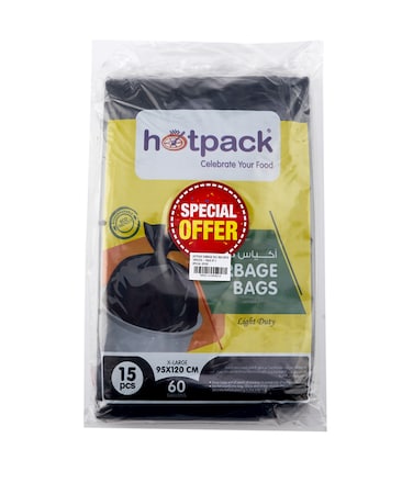 Hotpack Black Garbage Bag 60 Gallon, 95x120cm X-Large, 15 Pieces each Pack, Pack of 3 Offer