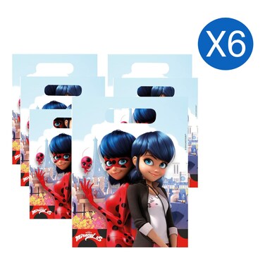 Miraculous Ladybug Themed Plastic Party Gift Bags Multicolour 6 PCS