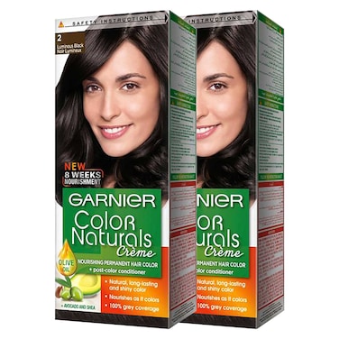 Garnier Colour Naturals Creme Nourishing Permanent Hair Colour 2 Luminous Black 2 PCS