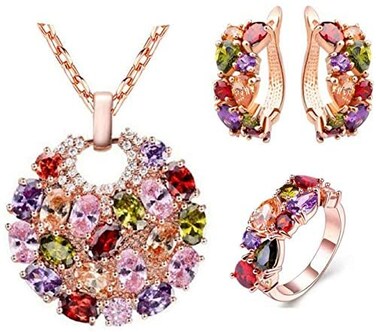 Aiwanto Colorful zircon necklace earrings set ladies jewelry three-piece