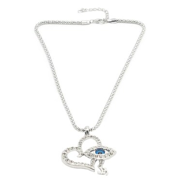 Tanos - Fashion Silver Plated Chain Heart Shape Pendant Evil Eyel Allah Design