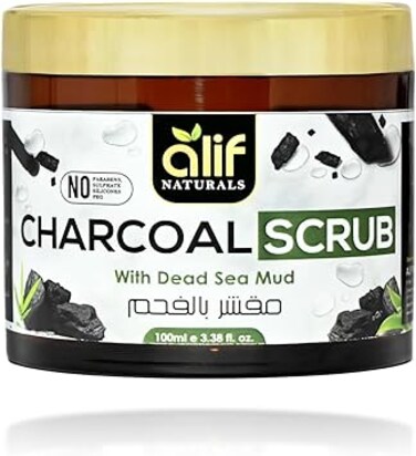 Alif Naturals Charcoal Face & Body Scrub with Goodness of Dead Sea Mud Tan Removal & Glowing Skin Exfoliation, unclogs pores, removes dirt & impurities All Skin Types 100g (Pack of 1)