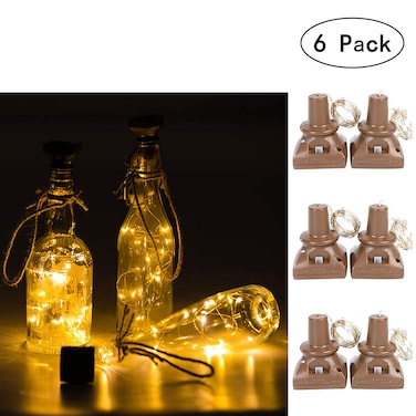 Generic-Solar Powered Wine Bottle Lights, 6 Packs of 20 LED Waterproof Square Cork Lights Fairy Lights Birthday Party, Christmas, Outdoor, Holiday, Garden, Courtyard Passage Decoration (Warm White)