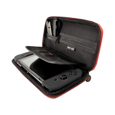 The case features a hard shell exterior that provides maximum protection against bumps, drops, and scratches. The interior is lined with soft, padded material to keep your console and accessories secure and prevent any damage.