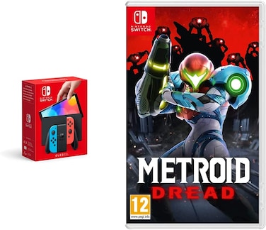Nintendo Switch (Oled Model) - Neon Blue/Neon Red + Metroid Dread (Nintendo Switch)