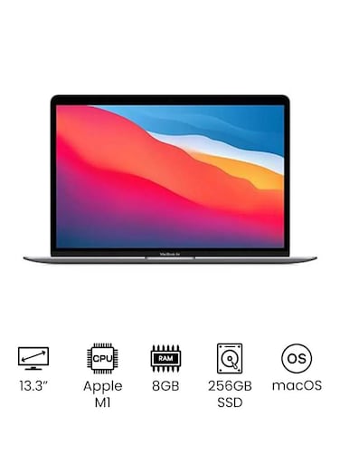 Apple Macbook Air MGN63, 13" Display, 8GB RAM, 256GB SSD, Integrated Graphics, mac OS, Apple M1 Chip With 8-Core Processor And 7-Core Graphics, English, Space Grey