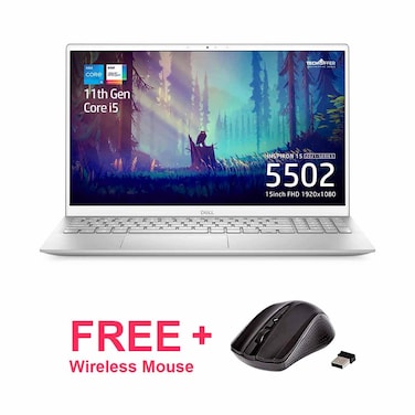 Dell Inspiron 5502 Laptop- 15.6" FHD, Intel Core i5-1135G7, 8GB RAM, 256GB SSD, FHD (1920 x 1080), FP Reader, Window 10- Silver + Free Wireless Mouse-International Version