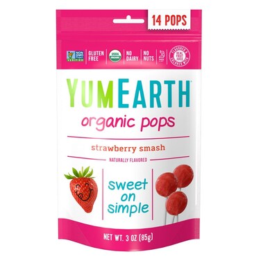 Yum Earth Naturally Flavoured Strawberry Smash Organic Lollipops, 85g