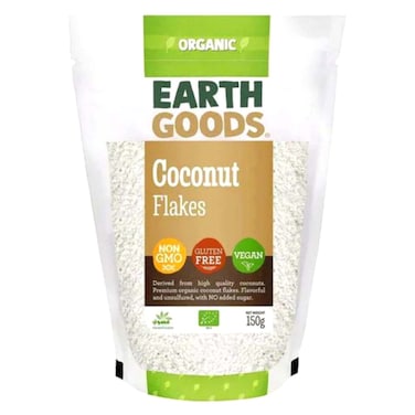 Earth Goods Organic Non GMO Gluten Free Vegan Coconut Flakes, 150g