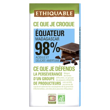 Ethiquable Organic Chocolate 98 Percent 100g