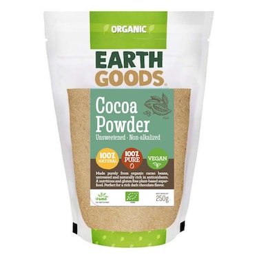 Earth Goods Organic Non Sweetened Non Alkalized Cocoa Powder, 250g