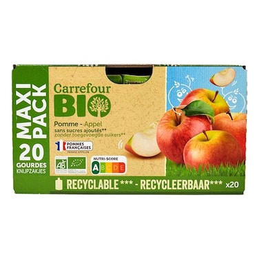 Carrefour Bio No Sugar Added Apple Compote 90g Pack of 20