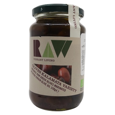 Raw Organic Kalamata Olives In Olive Oil 330g