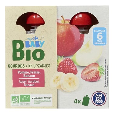 Carrefour Baby Bio Apple, Strawberry and Banana Compote 90g Pack of 4