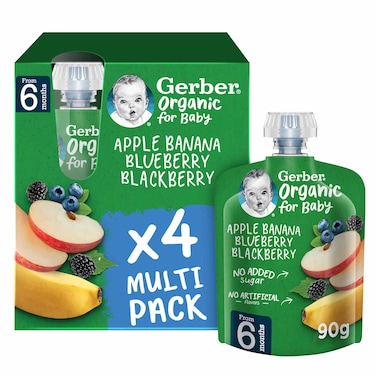 Gerber Organic with Apple, Banana, Blueberry and Blackberry, 90g, Pack of 4