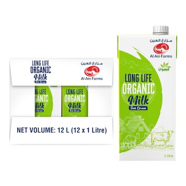 Al Ain Farms Full Cream Long Life Organic UHT Milk 1L Pack of 12