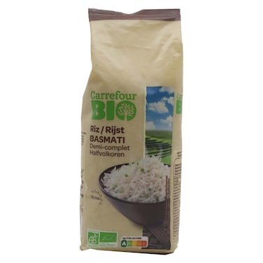 - Superior quality long grain semi-whole grain basmati rice from organic farming