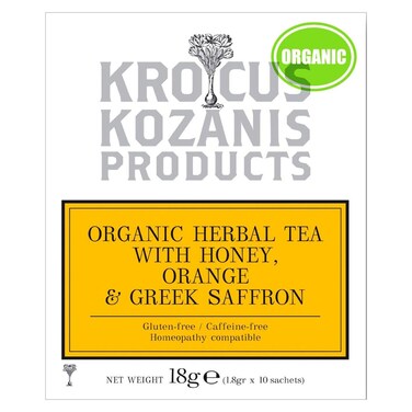 Krocus Kozanis Organic Herbal Tea With Honey Orange And Greek Saffron 10 Sachets