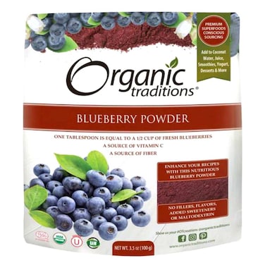 - Organic Traditions Blueberry powder is made from a proprietary low-temperature drying process to ensure optimal nutrient enzyme and antioxidant integrity not to mention an incredibly intense blueberry taste with no fillers flavours sweeteners or excipients added