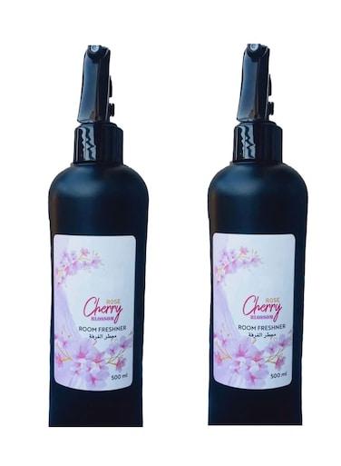 Room Freshener For Home and Office, Air Freshener Blended With Cherry Blossom Essential Oil Odor Eliminator for Pillows, Bedsheet, Carpet Rose Cherry Blossom 500Ml (2Pack)
