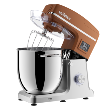 La Modano Stand Mixer with 12L Stainless Steel Mixing Bowl, 1100W Pure Copper Motor, LED Display with Timer, 6 Speeds Plus Pulse Function, Tilt-Head Design, Full Metal Gears- LMSM1200 Brown