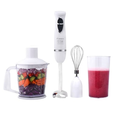 4-In-1 Electric Hand Blender Set Hand Stick Blender Mixer Includes Chopper and Smoothie Cup Stainless Steel Ice Blades(White)