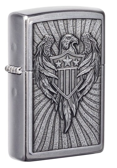 49450 207 Eagle Shield Emblem Design Street Chrome Windproof Lighter