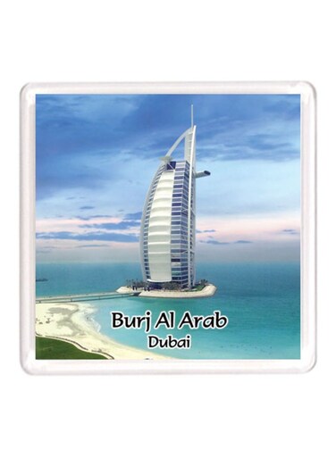 Ajooba Dubai Souvenir Quote Magnet Burj Al Arab White/Blue/Green 64X64 Millimeter