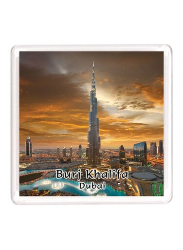 Ajooba Dubai Souvenir Quote Magnet Burj Khalifa Yellow/Black/White 64X64 Millimeter