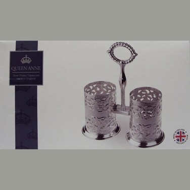 This Queen Anne silver-plated double holder for cutlery, with ornate centre diecast handle, keep your favourite cutlery neatly organised for exotic dining.