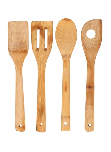 Delcasa 4-Piece Wooden Spatula Set Beige 14centimeter