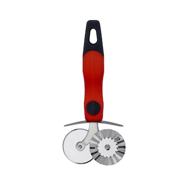 The Best Choice for Pizza Lovers!The Delcasa Soft-Grip Stainless Steel Double Pizza Cutter Wheel with PP Handle is a must-have for any pizza lover. Its comfortable soft-grip PP strong stainless-steel construction and generous wheeled blade mean you can cut any pizza into perfectly sized portions. This double pizza wheel has sharp rotating blades that roll through your pizzas, safely slicing through the thickest of crusts and toppings.It's so much easier than using a knife and can also be used to cut pastry sheets before baking, or portion flatbreads into shareable slices. The double wheels are well balanced, turn freely & will not touch each other. The smooth edge wheel is designed to cut pizzas, while the serrated edge wheel is designed to cut other edible foods, such as toast, gingerbread, waffle etc. These two wheels make this cutter a lot more useful than the simple single-wheel cutter.This pizza wheel also features a smooth, sturdy PP handle. It helps to reduce strains and means that cutting pizza is always comfortable. The handle also has a built-in hanging loop for easy storage. And it is designed with a finger guard to keep your hands well clear of the blade as you slice. And if that wasn't enough, it also has a pair of guards to stop your fingers slipping down. It's also best for cutting pie dough, quesadillas, sandwiches, cake, pastry, tortilla, focaccia and much more!
