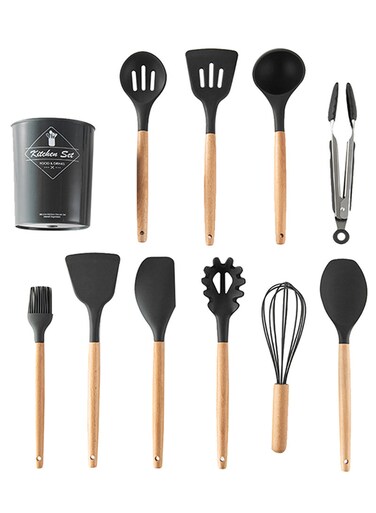 Generic 11-Piece Cooking Utensils Kitchen Set Black/Brown