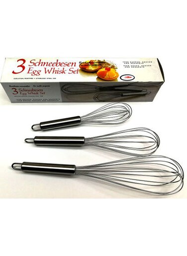 Generic 3-Piece Egg Whisk Set - Silver 8, 10, 12Inch